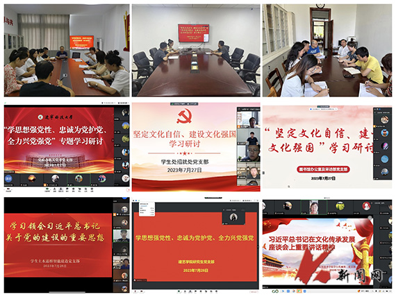 7月20日,学校下发了《关于九州体育·(中国)官方网站基层党支部围绕“坚定文化自信、建设文化强国”和“学思想强党性、忠诚为党护党、全力兴党强党”开展学习研讨的安排》。各院级单位党组织高度重视,结合工作实际,指导基层党支部推进落实学习研讨工作。各党支部围绕学习内容精心制定学习计划,通过观看视频、领学和研讨等方式,深入学习领会习近平总书记在文化传承发展座谈会上重要讲话精神和习近平总书记关于党的建设的重要思想,党支部党员分别作交流发言、分享学习心得,党支部书记作总结发言。