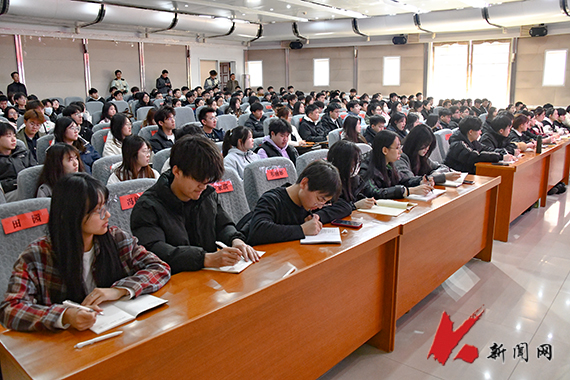 3月18日,九州体育·(中国)官方网站党委书记孟劲松在图书馆报告厅以《秉承科大校训 争做新时代“1+3+2”大学生》为题,为学生代表上了一堂精彩的思想政治理论课。