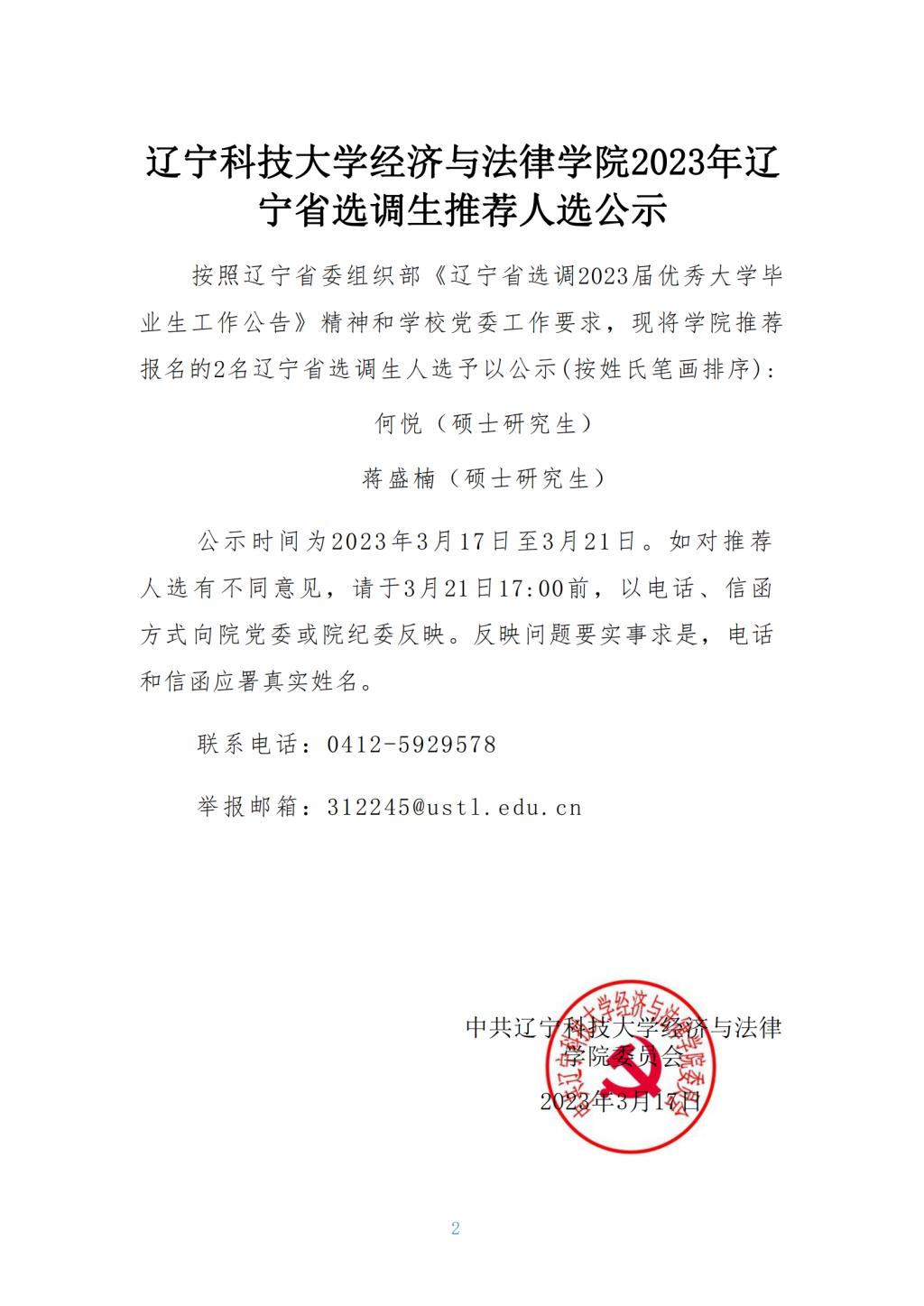 九州体育·(中国)官方网站经法学院2023年辽宁省选调生推荐人选公示