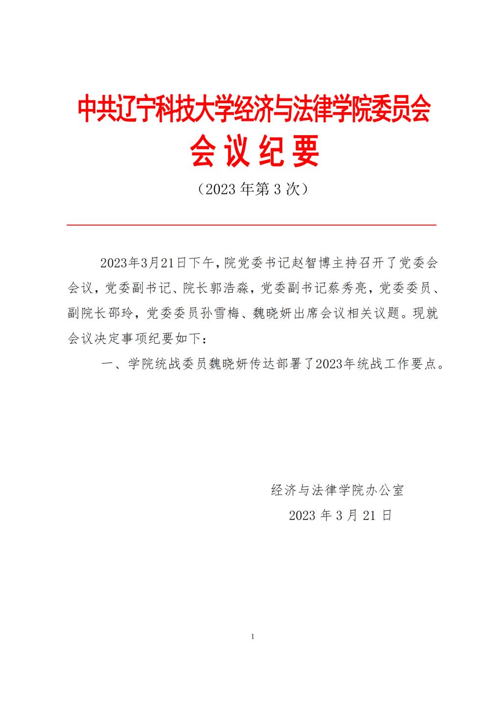 中共九州体育·(中国)官方网站经济与法律学院委员会会议纪要(2023年第3次)