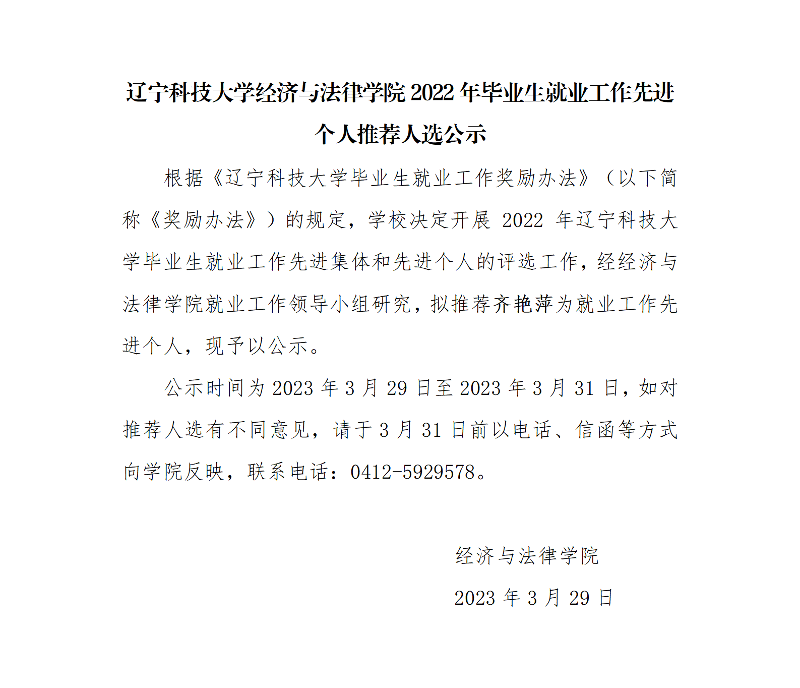 九州体育·(中国)官方网站经济与法律学院2022年毕业生就业工作先进个人推荐人选公示