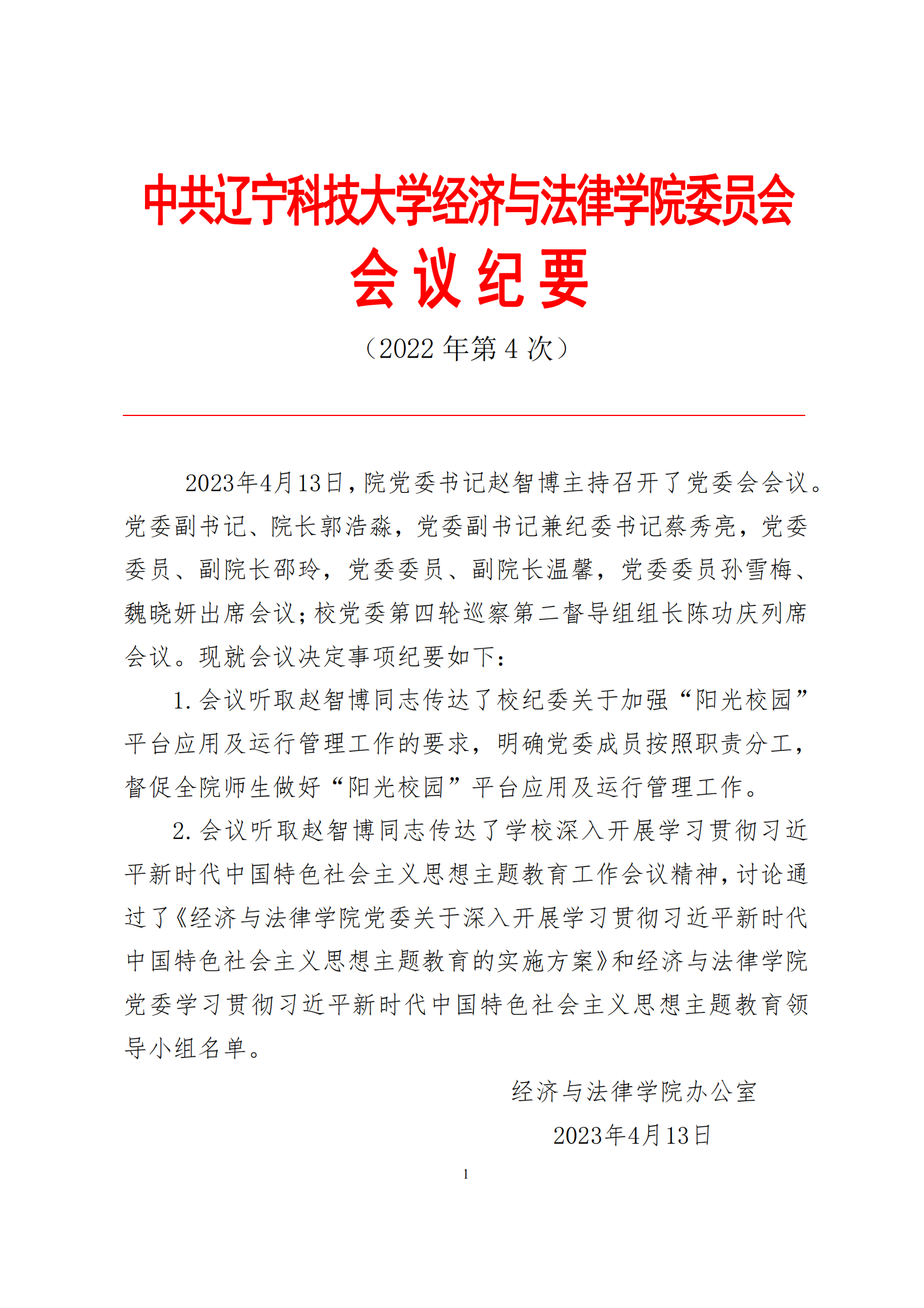 中共九州体育·(中国)官方网站经济与法律学院委员会会议纪要(2023年第4次)