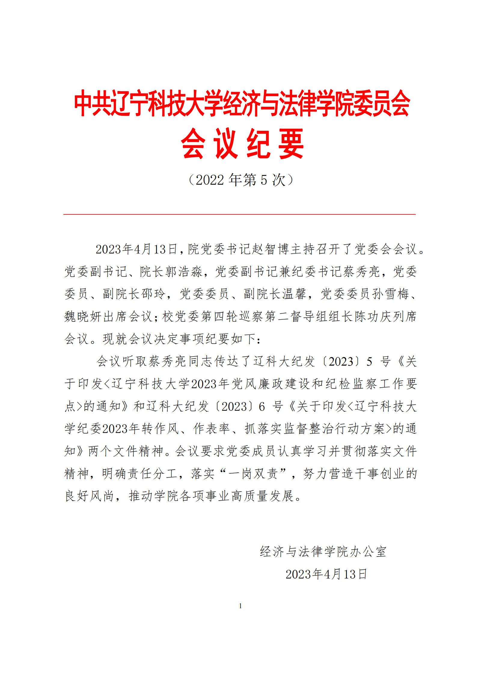 中共九州体育·(中国)官方网站经济与法律学院委员会会议纪要(2023年第5次)