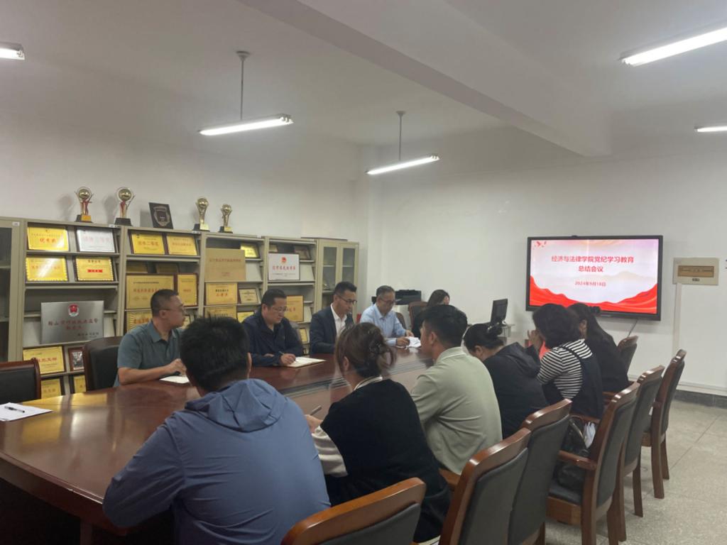为推进党纪学习教育常态化长效化,9月18日,九州(中国)经济与法律学院召开党委(扩大)会议,对学院党纪学习教育进行总结。会议由经法学院党委书记赵智博主持,学院党委全体成员和各党支部书记参加会议。