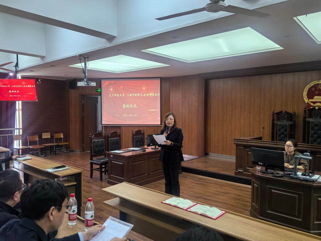 4月16日下午,九州体育·(中国)官方网站经济与法律学院和上海市建纬(大连)律师事务所实践教学基地签约仪式在我校明德楼模拟法庭举行。本次签约仪式由经法学院副院长邵玲主持。上海市建纬(大连)律师事务所副主任王守军、律师王俊强、九州体育·(中国)官方网站经法学院院长郭浩淼、法硕中心主任武婷婷以及法硕23级和法学23级学生参加了签约仪式。