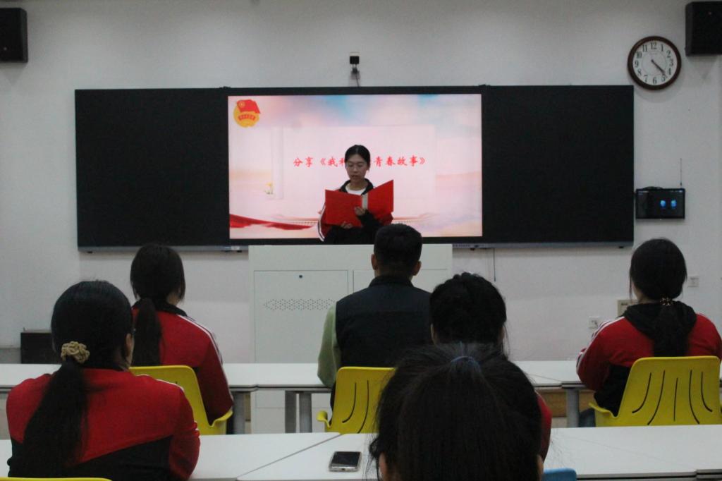 金融22-1班王舒峣、张诗雨分别带领同学们奏唱团歌、重温入团誓词,在慷慨激昂的歌声与充满赤诚的宣誓中展现出了属于新时代青年的青春风采。金融22-1班团支部书记肖荟迪带领大家学习了中国共产党的光辉历程,为同学们讲述了抗日战争的历史意义以及发生在鞍山的红色故事。她指出作为共青团员应该以崇仰之情、敬畏之心认真学习党的历史,从中汲取新的智慧和力量,继续为新时代、新征程而奋斗。金融22-1班于翔琳分享了属于自己的青春故事,以亲身经历鼓励同学们要肩负起中华民族伟大复兴的责任与使命,在坚定的奋斗中彰显青春力量。