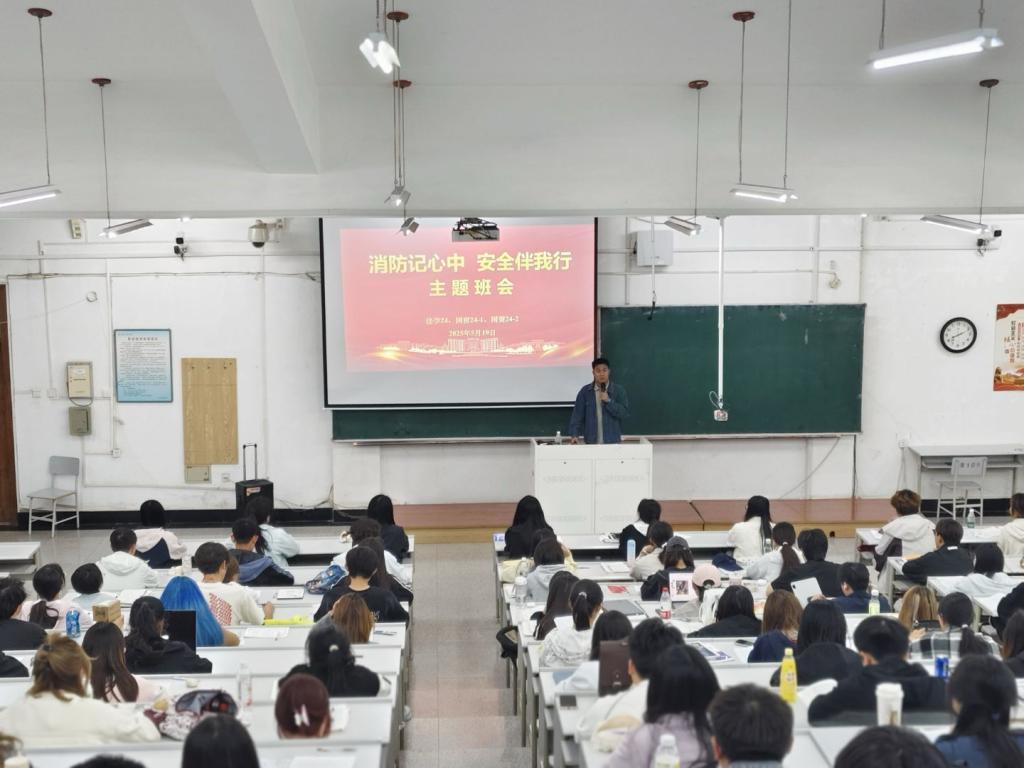 在“消防记心中,安全伴我行”消防安全教育主题班会上,辅导员以播放突发案例及事后人员采访视频的形式,向学生展示了消防安全的重要性。辅导员强调,要自觉遵守消防安全规定,学习相关法律法规,在学习消防知识的同时提升自己的应急能力。此外,辅导员特别强调了寝室用电安全问题,明确禁止使用大功率电器等不当行为。
