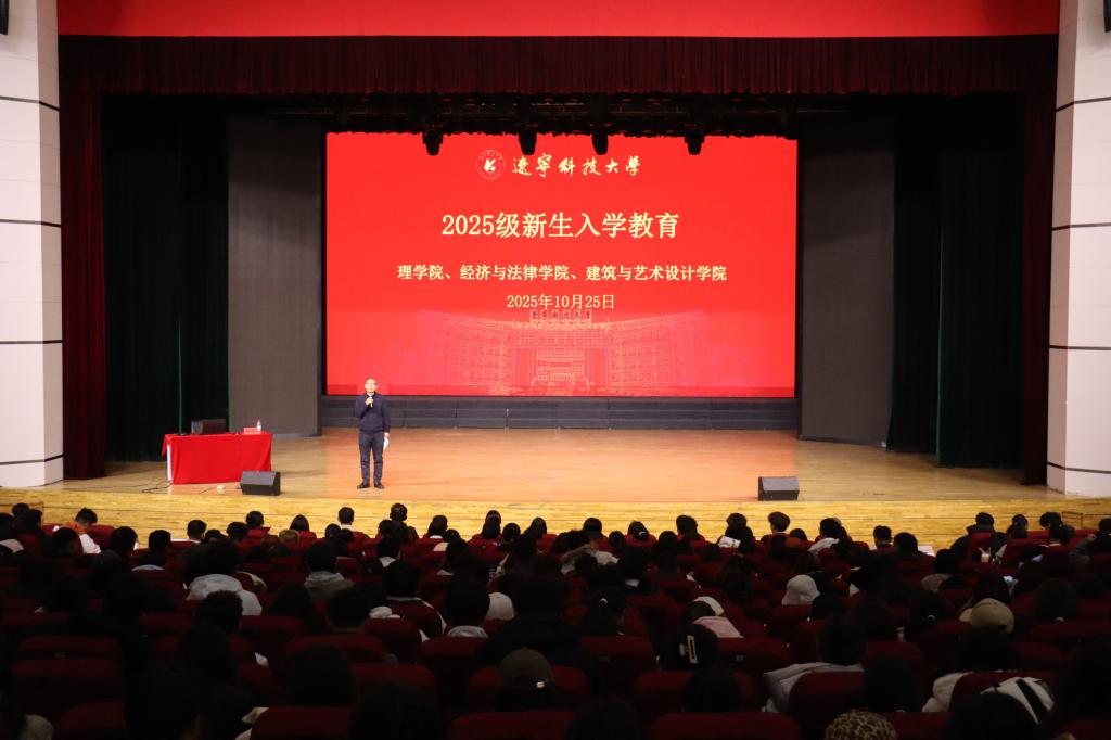 为帮助新生尽快适应校园环境与大学生活,树立正确的大学观与发展观,10月25日,经法学院联合理学院、建艺学院于校礼堂开展2025级新生入学教育活动,三个学院2025级全体新生共同参加。本次活动共分为让大学对自己有用、防范电信诈骗,守护财产安全及学习经验分享会三个板块。