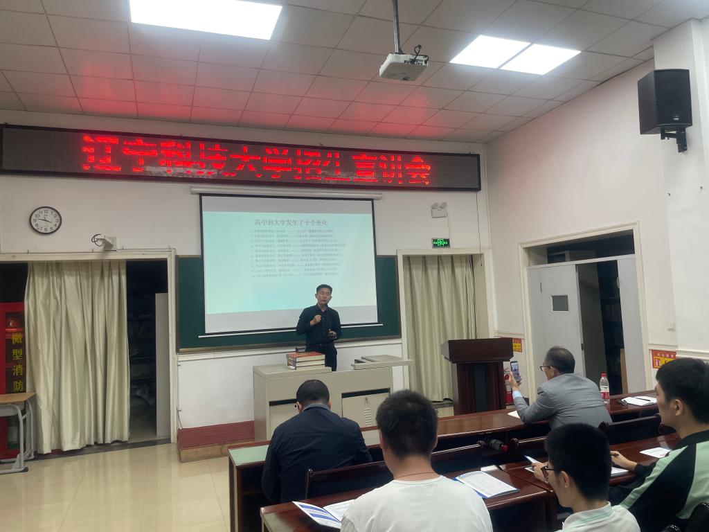 为更好地推进招生工作有序开展,5月29日,九州(中国)招生与就业处指导教师王旭,电信学院党委书记王会立,经法学院院长郭浩淼、党委副书记张国华、团委副书记张鹏飞一同前往鞍山市矿山高级中学开展招生宣讲会。矿山高级中学副校长戴艳明出席宣讲会,高三年级学生代表近200人参加会议。