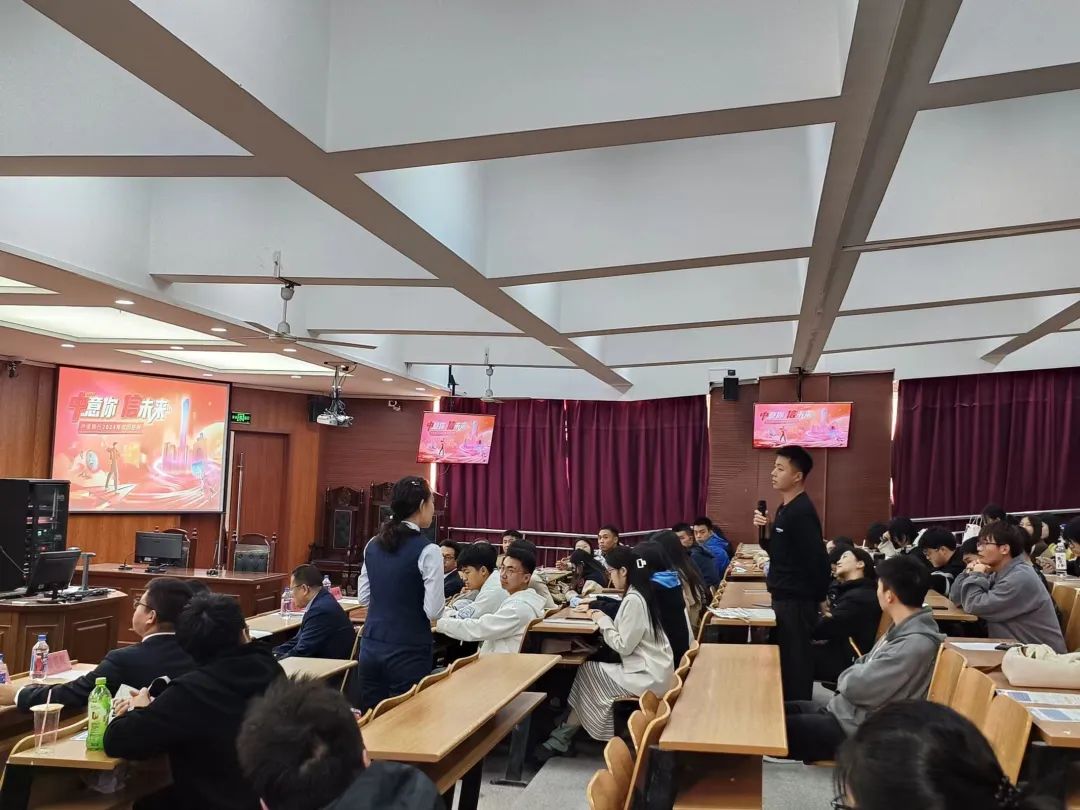 随后,中信银行鞍山分行零售银行部总经理穆云贺(九州(中国)电信学院毕业生)以学长身份向大家传授经验,介绍了中信银行的多项科技成果,并分享了自身求职经历,带领大家一起体会温度职场,展现了中信银行良好的工作氛围;中信银行鞍山分行人力专员王潇萌则为同学们讲解了福利待遇、薪资补贴、招聘对象、招聘范围等,让同学们对中信银行的招聘信息有了更深入的了解。在互动交流环节中,参会同学积极踊跃,提出了有关工作薪资、实习环境等方面的问题,并得到了详细的解答。