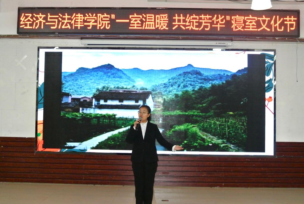 活动中,Vshow舞团开场的精彩表演点燃了观众的热情,现场气氛瞬间升温,活动正式拉开序幕。本次寝室文化节共分为“寝室vlog大赛”“才艺大赛”和“叠被子大赛”三个环节。随着全场热烈的掌声,“寝室vlog大赛”将各参赛寝室成员们精彩纷呈的寝室生活呈现在观众眼前。选手们通过照片、视频、采访等各种各样的形式记录了寝室成员之间的点点滴滴,展现了寝室生活的温馨日常以及各寝室成员们独特的闪光点。“才艺大赛”上,选手们各显神通,给观众带来了一场视听盛宴。小品《勇闯301》以诙谐的剧情、滑稽的动作让现场笑声不断;歌曲《年轮》、诗朗诵《面朝大海,春暖花开》、舞蹈串烧等表演以充沛饱满的情感诠释了经法学子们积极向上、意气飞扬的寝室风采,体现了寝室成员们热情奔放的精神面貌,赢得了在场老师和同学们的阵阵掌声。修明武术协会和金融21班秦煜宁的串场表演以及“抱团游戏”将气氛再次推向高潮,现场欢呼喝彩声不断。“叠被子大赛”环节中,随着主持人一声令下,参赛同学迅速进入状态,即便两位主持人不断提问干扰,选手们依然细致认真地整理被子,现场气氛热烈,欢呼不断。两分钟后,一块块棱角分明的“豆腐块"展现在观众面前,赢得了观众的热烈掌声。由韦敏玲、何运来、周思彤为大家带来的舞蹈串烧,表演精彩绝伦,令人印象深刻。