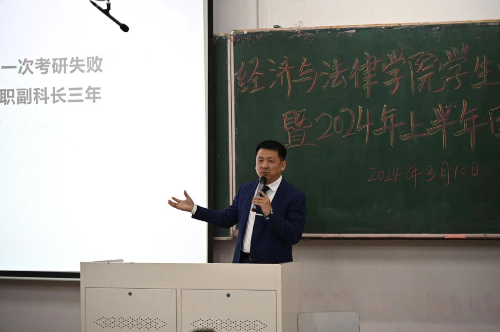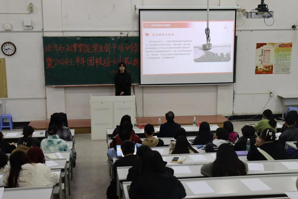 为了深入学习贯彻落实党的二十大精神,引导和帮助团员青年上好理论与现实相结合的“大思政课”,3月10日至4月2日,经法学院组织开展了学生骨干培训暨2024年上半年团校培训。学院党委书记赵智博、党委副书记张国华、学办主任齐艳萍、团委副书记张鹏飞、法律系主任蒋喆等分别为培训对象作专题讲座,经法学院全体学生骨干及团校培训全体学员共计278人参加了培训。