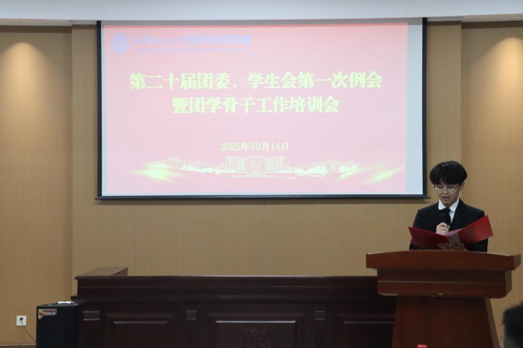 会议伊始,学生会主席团成员张珈奕宣读《经法学院学生会工作章程》,详细介绍了团委、学生会的工作职能与考核标准,并对各团学骨干的日常工作作出了规范与指导。随后,各部门负责人依次上台发言,介绍部门职责及未来工作规划。部门成员也进行了自我介绍,纷纷表示将以饱满的热情和高度的责任感投入工作,在今后的学习与实践中携手并进,共同为经法学院的发展贡献力量。
