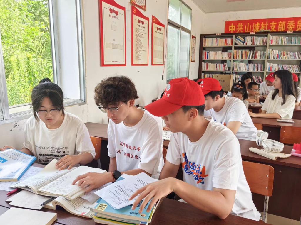 村里来了十几个“小老师”的消息很快就在山城村传开了。一时间,山城村村部热闹起来,乡亲们纷纷把自己家的孩子送到村部来学习,村部会议室变成了暑假小课堂。大学生志愿者们把来村部学习的学生分成高中、初中、小学三个小组,由不同的志愿者负责,每天上午帮助他们补习辅导文化课,下午给他们讲法治、军事、航天科技、人工智能等平时接触不到的知识,大大拓宽了孩子们的视野。课间休息时间,志愿者还带领孩子们学习手势舞、唱歌、打羽毛球等,让孩子们得到全面发展。