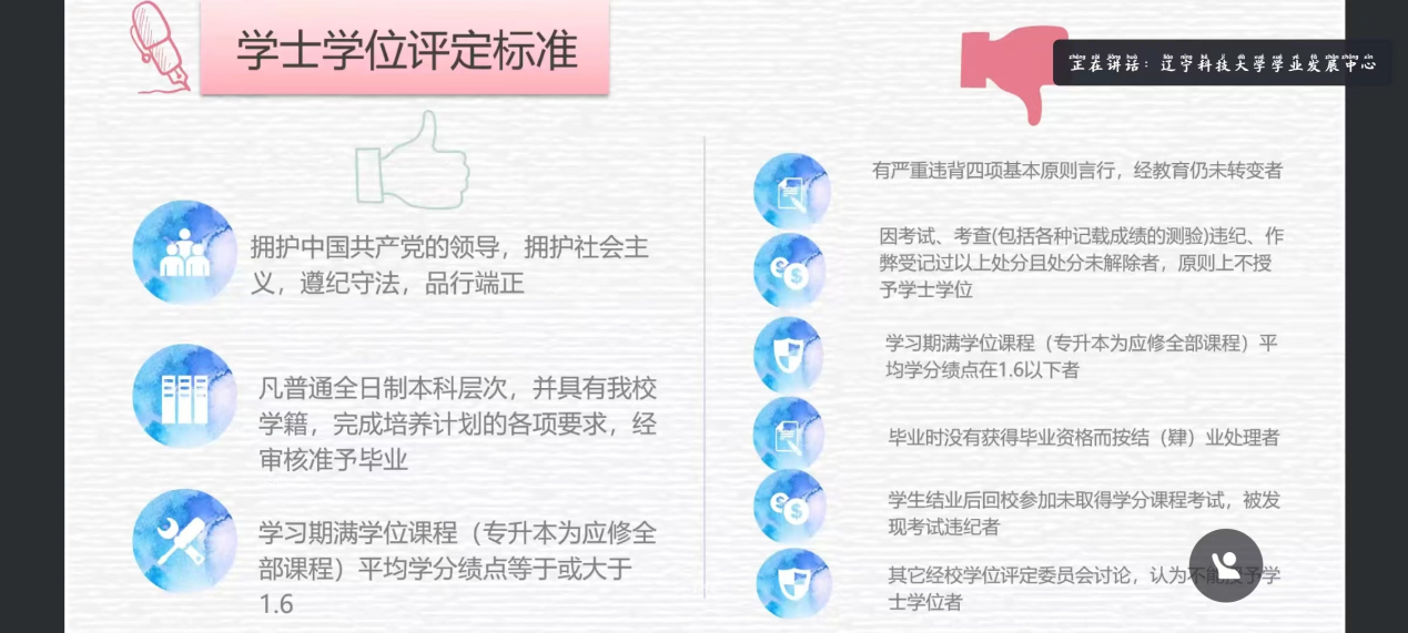 培训根据学生需求和关切,选取了《九州体育·(中国)官方网站本科学生学籍管理执行细则》《九州体育·(中国)官方网站考试工作管理规定(试行)》《九州体育·(中国)官方网站大学生学业发展指导工作实施意见(试行)》等10个教学管理制度文件,重点围绕学籍学位、考试和选课、学业发展三大方面为学生进行制度解读,使信息员同学对学习过程中应知的相关管理规定和要求有更清晰的认识,以便为学生学业发展提供更好的支持和服务。