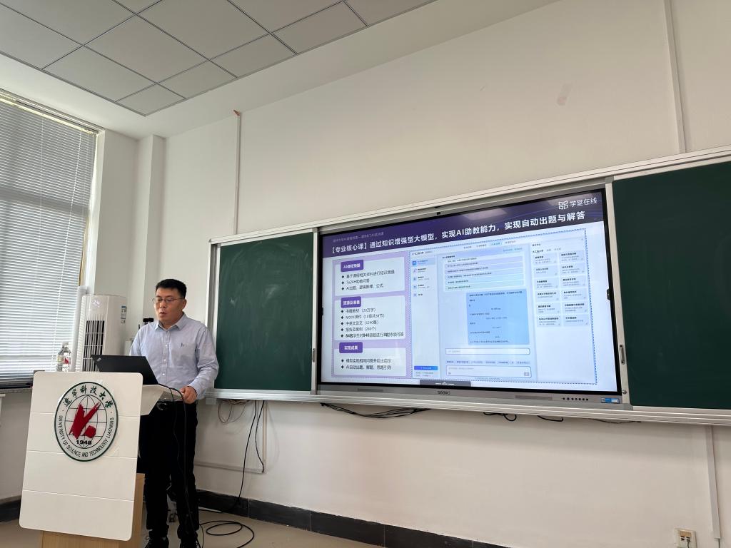 培训从生成式人工智能技术给教育带来的时代契机为切入点,详细讲解了AI技术应用于高等教育教学改革的政策背景。他详细解读了AI课程的内涵,分析了AI课程与慕课、知识图谱、混合式教学之间的相互关联。结合教学信息化改革经验和智慧教学实践,程浩分享了清华大学AI课程建设的模式经验,并对AI课程的建设方法及具体场景的应用模式进行了深入阐述。通过生动而具体的案例,展示了学堂在线AI课程如何利用大数据分析和智能技术提升学生的学习体验,整合多种资源以支持个性化教学,助力人才培养模式的创新转型。在交流互动环节,与会教师们就AI课程建设模式及在雨课堂的具体场景应用开展了热烈的讨论。
