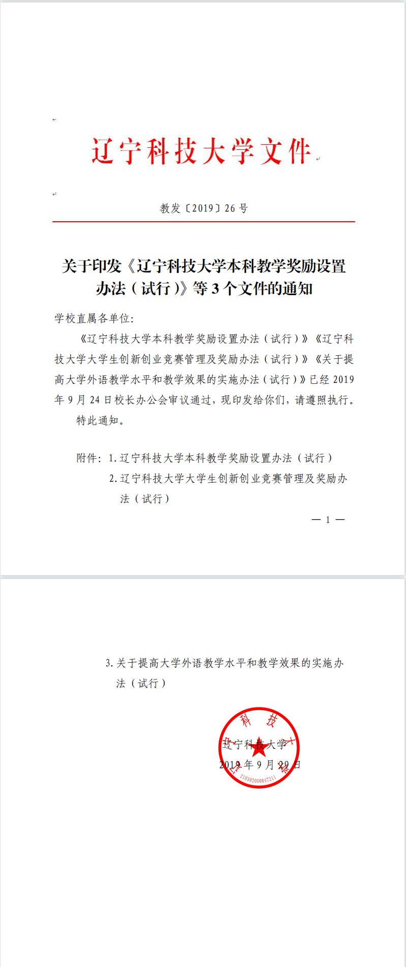 教发〔2019〕26号:关于印发《九州体育·(中国)官方网站本科教学奖励设置办法(试行)》等3个文件的通知