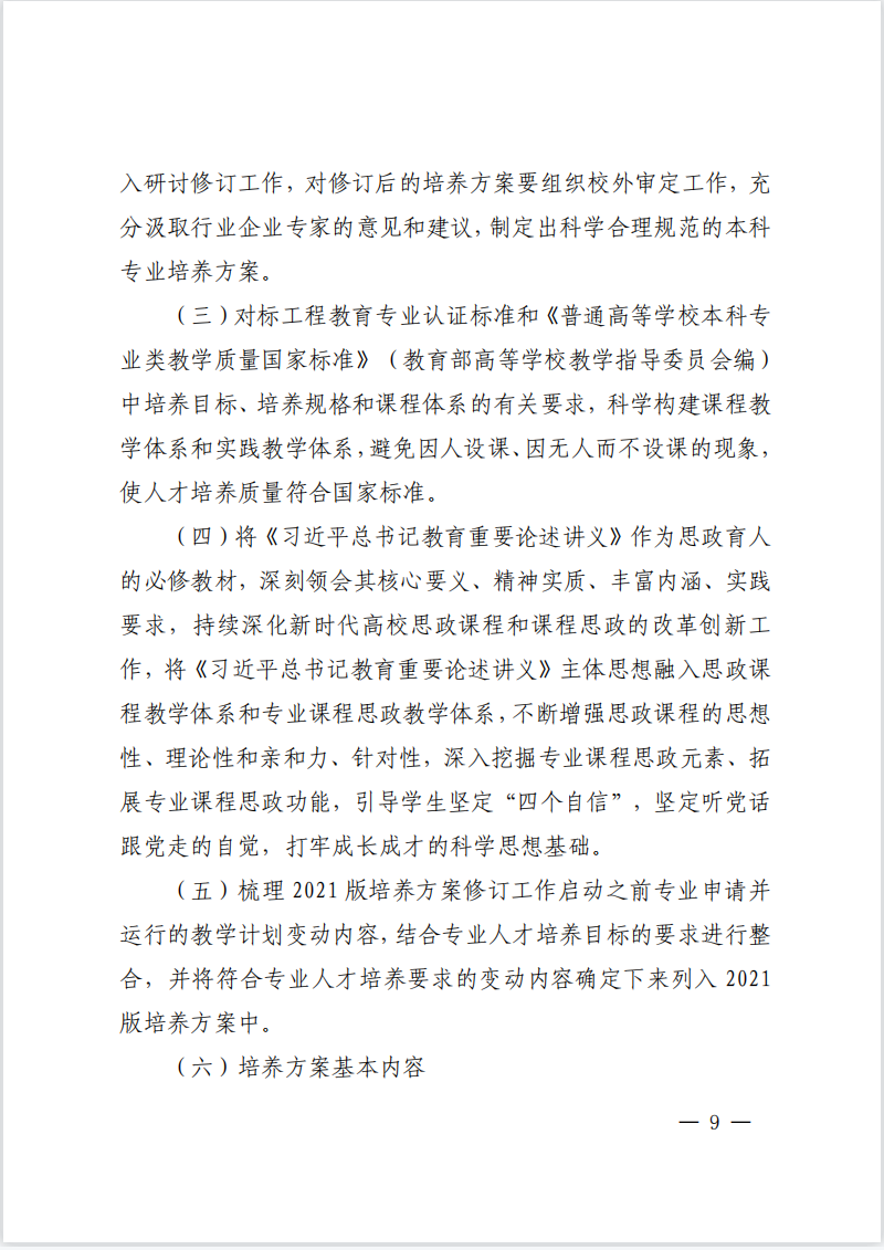 九州(中国)校发〔2021〕18号:九州体育·(中国)官方网站2021版本科专业培养方案修订意见