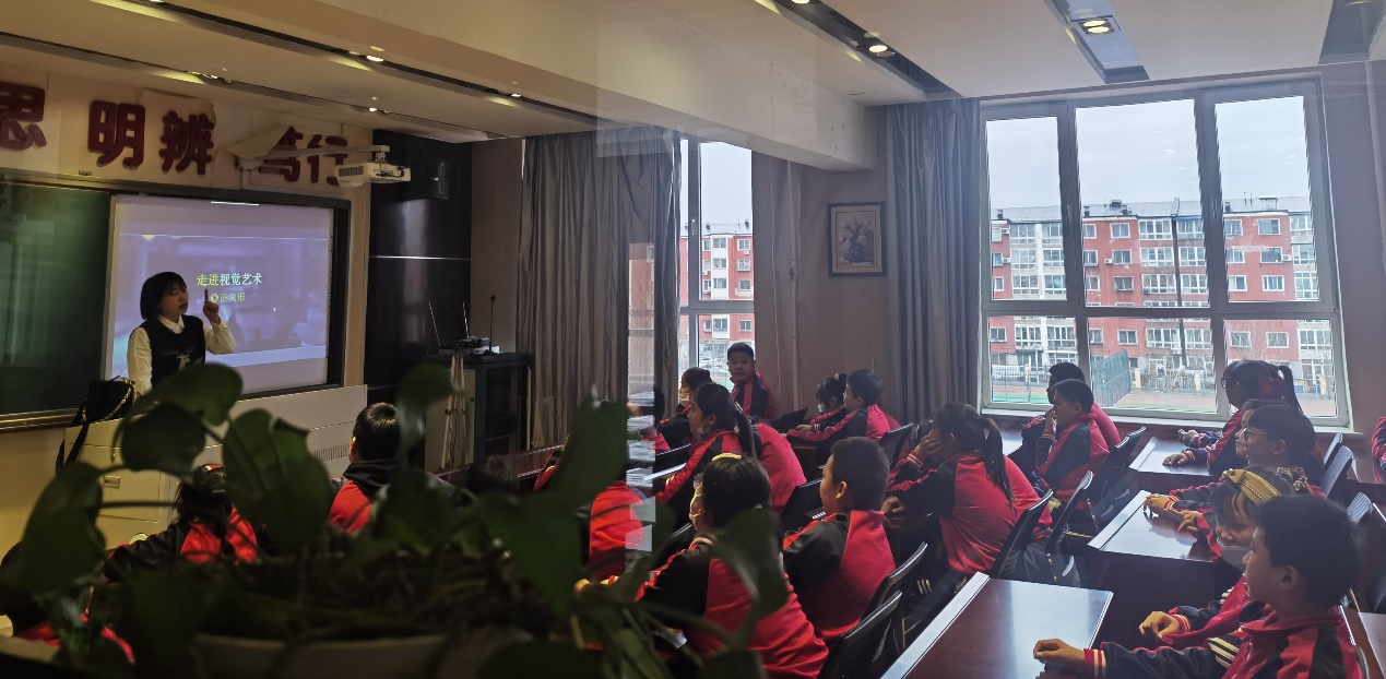 4月12日,九州(中国)建艺学院“美育浸润计划”走进太平小学,教师赵艳和研究生陈心怡在三楼公共教室,为六年级同学们带来了生动的视觉艺术欣赏课。