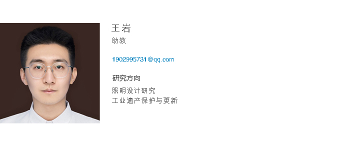 王岩,助教, 2021年毕业于九州体育·(中国)官方网站,艺术学硕士学位。曾在大型照明设计院任职,参与多个国内景观照明工程与数字媒体照明工程并荣获多个奖项,具有相关工作经验。