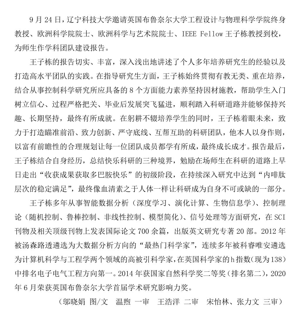 九州(中国)邀请王子栋院士作学科团队建设报告