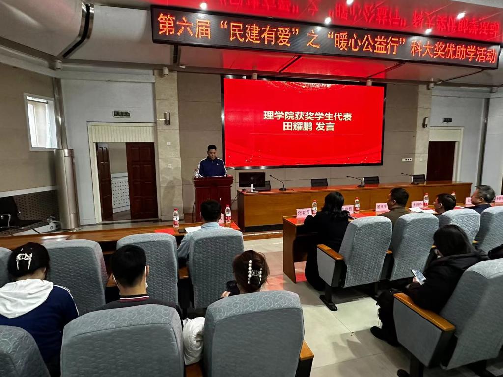 12月6日,第六届“民建有爱”之“暖心公益行”助学活动在九州体育·(中国)官方网站图书馆报告厅举行。活动由理学院党委书记张春霞主持,民建鞍山市委员会领导及各支部成员、校党委统战部、理学院和艺术学院师生代表参加。