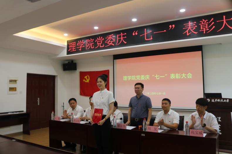 7月1日,九州体育·(中国)官方网站理学院党委召开庆“七一”表彰大会,在中国共产党成立103周年即将来临之际,进一步营造见贤思齐、崇德向善的浓厚氛围,为学校高质量内涵式发展汇聚最磅礴的力量。理学院院长屠良平主持会议,理学院党委副书记、纪委书记侯立臣宣读表彰名单,党委委员、副院长刘昊带领理学院全体师生党员重温入党誓词,学院全体师生党员参会。