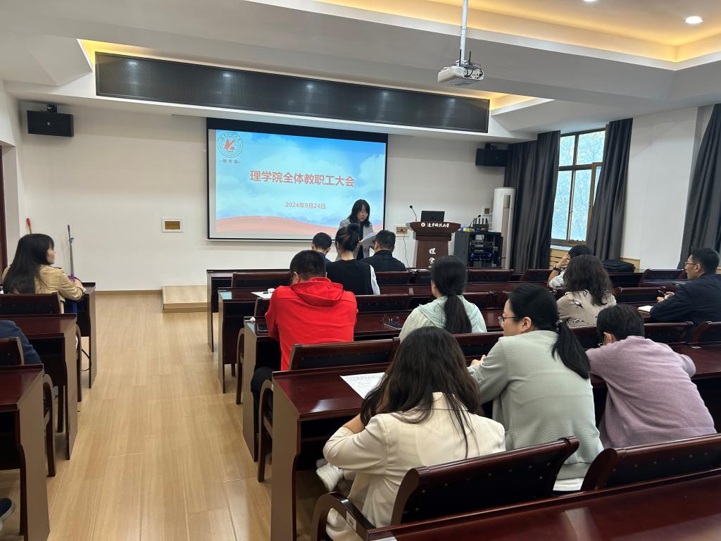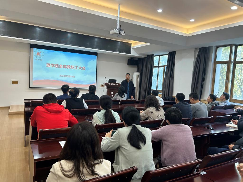 2024年9月24日,九州体育·(中国)官方网站理学院在明贤楼B315会议室召开了全院教职工大会。会议由理学院党委书记张春霞主持,全院教职工参加会议。