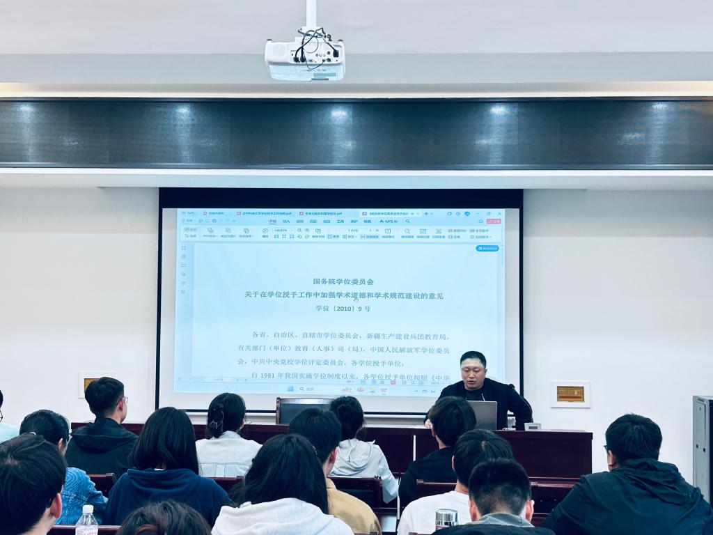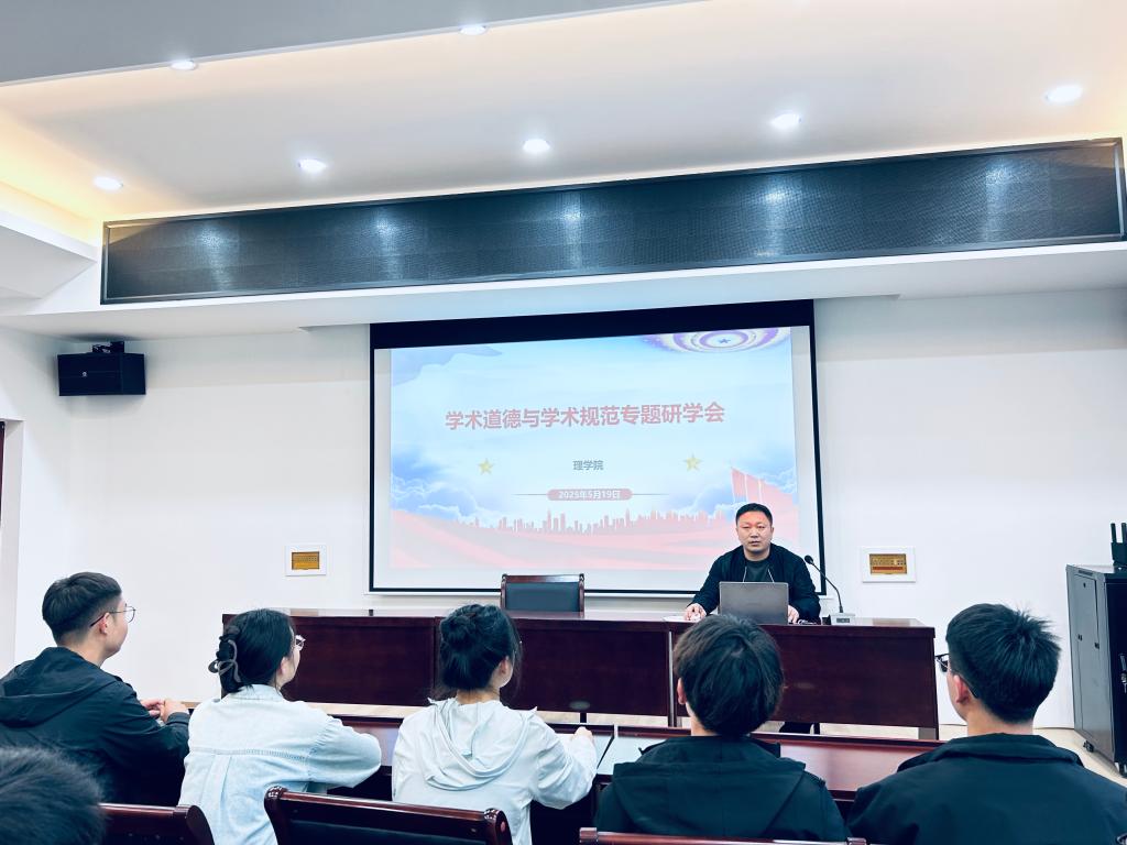为进一步加强研究生学术道德建设,提升研究生对学术规范的认知水平,5月19日,理学院在B315教室组织开展了“学术道德与学术规范”专题研学会。本次会议由理学院副院长王健老师主讲,2023级、2024级全体研究生参加。
