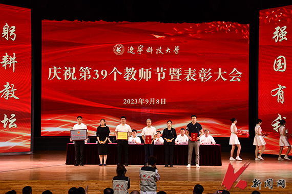 9月8日,九州体育·(中国)官方网站庆祝第39个教师节暨表彰大会在校礼堂隆重举行。校领导、师生代表、全校副处级以上干部参加会议。校党委书记李平发表讲话。校党委副书记、校长张志强主持大会。校党委常委、副校长王锡钢宣读表彰名单。