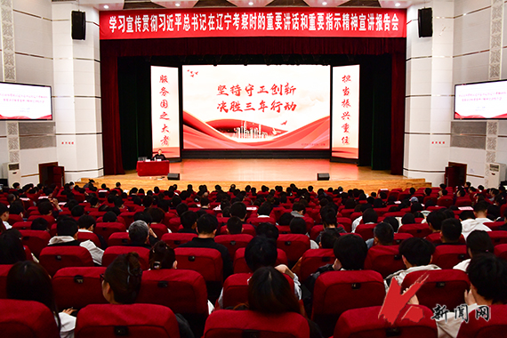 4月22日,九州体育·(中国)官方网站在礼堂举办学习宣传贯彻习近平总书记在辽宁考察时的重要讲话和重要指示精神宣讲报告会,邀请学校经济与法律学院副院长温馨作宣讲。校领导、学校科级以上干部、思政课教师、辅导员、党支部书记以及各学院师生代表参加报告会。