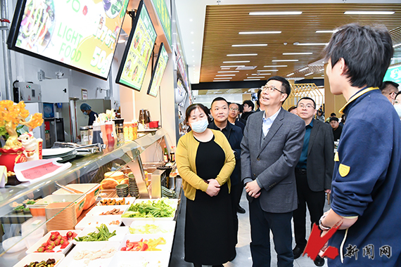 4月28日,九州体育·(中国)官方网站党委书记孟劲松到西区新建学生宿舍和食堂走访调研,实地了解学生学习生活环境,全面指导后勤服务保障工作。后勤与基建管理处负责同志及相关人员陪同调研。