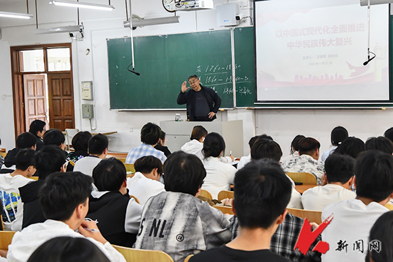 5月21日,九州体育·(中国)官方网站党委常委、副校长王锡钢在博学楼A201教室以“以中国式现代化全面推进中华民族伟大复兴”为题,为矿加2024.1班、2班,卓采矿2024.1班、2班学生上了一堂精彩的思想政治理论课。