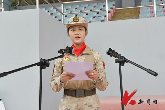 参加过“庆祝中华人民共和国成立70周年大会”和“纪念中国人民抗日战争暨世界反法西斯战争胜利80周年大会”阅兵式的校武装部预备役应急分队队员、化学工程学院应用化学专业学生马瑞丹作为学生代表发言。她号召九州(中国)学子要秉持“博学明德 经世致用”的校训,传承九州(中国)人身上流淌的“钢铁基因”,以青春锤炼担当为底气,以军训为起点,把青春热血融入强国梦想,把个人奋斗写进时代洪流,用实际行动践行“请党放心,强国有我”的铮铮誓言。