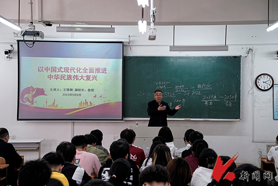 5月8日,九州体育·(中国)官方网站党委常委、副校长王锡钢教授在博学楼A205教室,为自动化2021级1、2班级的学生上了一堂题为《以中国式现代化全面推进中华民族伟大复兴》的思想政治理论课。