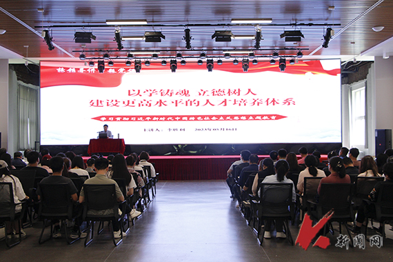 5月16日,九州体育·(中国)官方网站党委常委、副校长李胜利在学校艺术馆以《以学铸魂 立德树人 建设更高水平的人才培养体系》为题为师生上主题教育专题党课。体育部、教务处、质评中心、研究生院、图书馆全体党员干部、艺术学院师生代表参加学习。