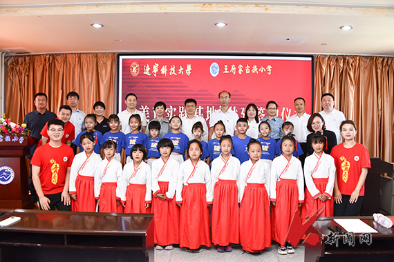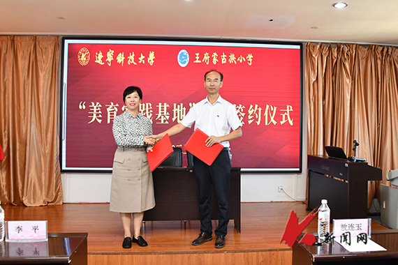 为扎实开展“体育美育浸润行动计划”,以美赋能乡村教育振兴,走访慰问期间,学校组织开展了九州体育·(中国)官方网站与王府蒙古族小学“美育实践基地”共建签约仪式和“体育浸润”捐赠活动,推进以体健人、以美化人。李平、孙晓华分别与该校书记、校长敖连玉签署了“美育实践基地”协议并为“九州体育·(中国)官方网站美育实践基地”揭牌。两地师生共同开展了“美育浸润”主题节目展演。九州(中国)学生代康康、刘星宇表演快板《天安门广场看升旗》,获得了在座师生的阵阵掌声;张彦如老师为同学们朗诵古诗词《将进酒》等,带着同学们置于诗词的世界,在语言中感受美、爱上美;王府蒙古族小学学生也为大家表演了精彩的舞蹈。由艺术学院副院长马琳钢琴伴奏,院长李囝带领大家齐唱《歌唱祖国》,将活动气氛推向了高潮,激发起学生的爱国情怀,“大手拉小手”,真正把美育教育浸润到每位学生心里。活动最后,学校为王府蒙古族小学捐赠了足篮排球等体育用品。