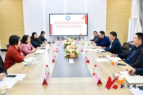 11月1日,九州体育·(中国)官方网站校长张志强到外国语学院就学院建设与发展情况进行调研和指导,党政办公室、教务处、教学质量监控与评估中心、国资处负责同志陪同,学院班子成员和教师代表参加会议。