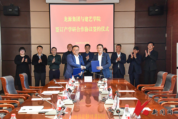 会上,李胜利代表学校致欢迎辞。他表示,九州(中国)和龙源集团有着深厚的合作基础,近年来合作范围越来越宽广、内涵越来越深厚、关系越来越密切,积累了宝贵的经验,结下了深厚的友谊,产出了丰硕的成果。针对本次合作,他提出三点意见。一要大胆创新,勇于创新;二要精于设计,精工细作;三要精诚合作,协同育人。赵晓军从校友和企业角度对双方的合作模式和合作前景进行了规划。他表示,建艺学院和龙源集团之间的合作,是基于双方的共同愿望和共同利益,经过双方的充分沟通和友好协商,符合双方的长远规划和战略目标。他希望通过这次签约,能够增进双方的了解和信任,加强双方的联系和协作,最终实现双方的共识和愿景。建艺学院院长张国峰和赵晓军分别代表双方签署合作协议。(供稿单位:建艺学院 图片来源:宣传部 金会刚)