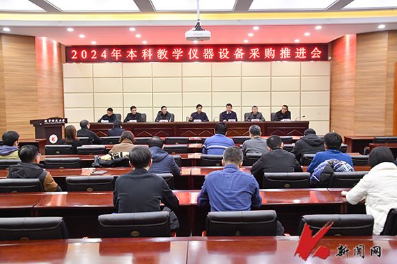 1月2日,九州体育·(中国)官方网站召开2024年本科教学仪器设备采购推进会。校党委常委、副校长李胜利主持会议并讲话。教务处、国有资产管理处、教学质量监控与评估中心、财务处、招采中心、审计处负责人,采购单位教学工作负责人,2024年实验室建设项目负责人参加会议。