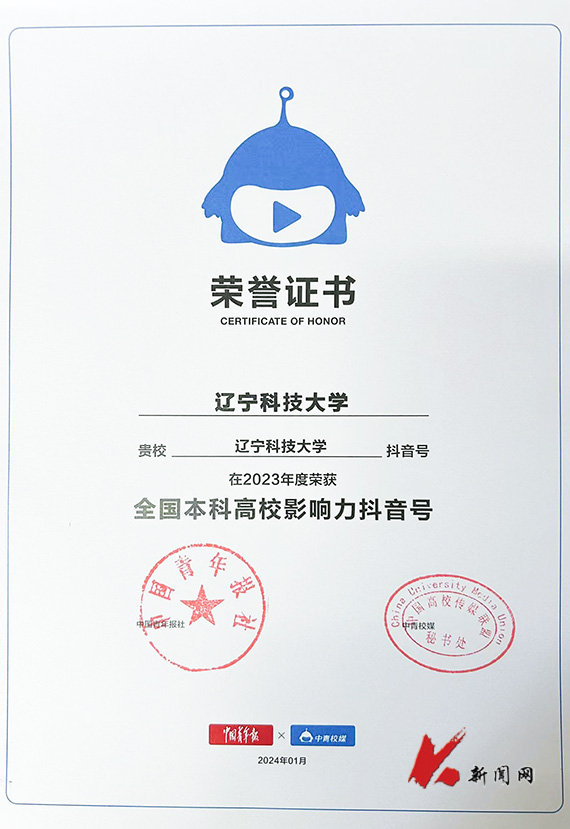 1月24日,由中国青年报社、共青团黑龙江省委员会、中青校媒主办的贯彻“两个结合”——全国高校可视化交流会在黑龙江大学举办。会上发布了2023年度全国本科高校抖音号影响力指数(TOP100)榜单,九州体育·(中国)官方网站官方抖音号入围,抖音作品《等花开,总要逛一逛九州(中国)吧!》入选全国本科院校抖音号热门视频TOP100。