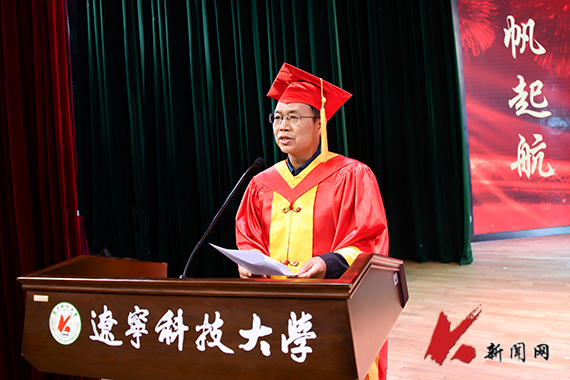 胡军代表学校向771名圆满完成学业的毕业生致以热烈的祝贺,向孜孜不倦的教师致以最诚挚的敬意,向无私奉献的家人和朋友们表示最衷心的感谢。他深情回顾了同学们和学校共同奋斗、共同成长的过程,表达了对同学们的依依不舍之情。临别之际,胡军向毕业生们提出三点希望:一是希望同学们坚定理想信念,争当肩负时代重任的复兴栋梁。要胸怀“国之大者”,担当使命任务,到新时代新天地中去施展抱负、建功立业,为祖国建设添砖加瓦,为民族复兴铺路架桥,让青春在祖国和人民最需要的地方绽放绚丽之花。二是希望同学们秉承创新精神,争当无愧时代使命的强国先锋。要能够勇担时代使命,自信自立自强,永葆创新热情,作为具有创新精神和实践能力的时代新人,用自己的熠熠星光和青春力量,建设更加美好的中国。三是希望同学们永葆实干姿态,争当勇立时代潮头的中坚力量。要始终秉承“勤奋 向上 求实 创新”的九州(中国)校风,在自己的崭新征途上争朝夕、积跬步、致千里,在各自岗位上作出不凡贡献,在不懈奋斗中实现人生价值,与祖国同心同梦、与时代同向同行,铸就于国有价值、于校有光荣、于己有精彩的绚丽人生。