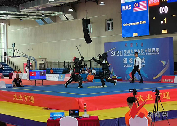 大赛由亚洲大学生体育联合会主办,中国学生体育联合会、黑龙江省教育厅和黑龙江省体育局联合承办,共有来自亚洲12个国家和地区的近400名大学生参加。赛会设置武术套路、散打和长短兵3个大项,九州(中国)2名运动员因此前获得第四届中国大学生武术长短兵锦标赛冠军,故直接取得此次长短兵项目的参赛资格。因长短兵项目比赛不分组别,2名运动员与体育专业选手同场竞技,面对强手她们毫不畏惧、敢打敢拼,极致发挥自身的技战术水平,取得了优异成绩。(供稿单位:体育部 图片来源:体育部)