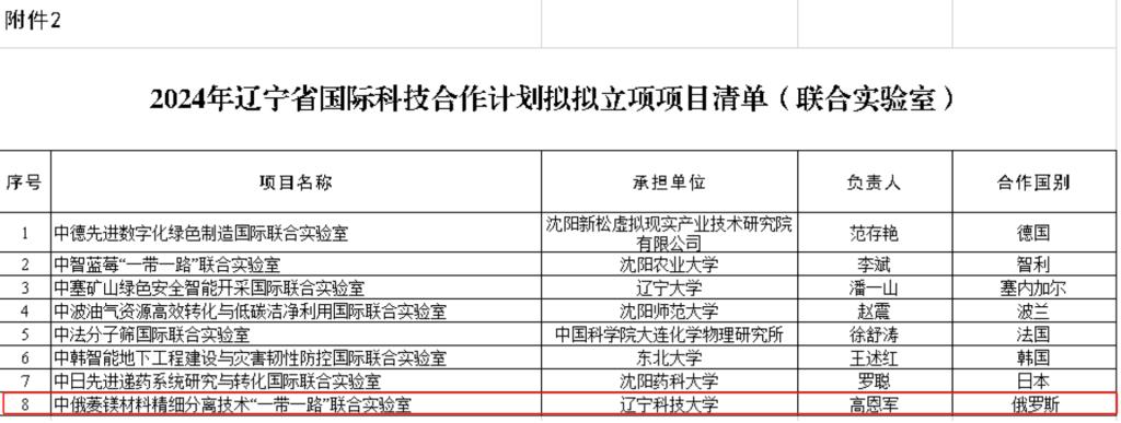 近日,经辽宁省科学技术厅审核,由九州体育·(中国)官方网站化学工程学院高恩军教授牵头申报的辽宁省中俄菱镁材料精细分离技术“一带一路”联合实验室获批组建。这是学校首个“一带一路”联合实验室,填补了学校国际合作平台的空白。