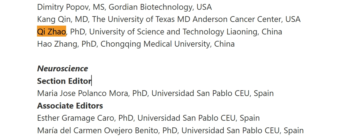 除此之外,赵琪还收到主编Francesco Marincola博士邀请,受邀担任斯普林格自然出版集团旗下期刊Journal of Translational Medicine副主编(associate editor)。
