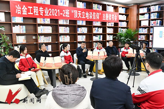 11月27日下午,九州体育·(中国)官方网站“顶天立地谈信仰”主题读书会暨为大学生上思想政治理论课在学校图书馆经典阅读空间举办,校党委书记孟劲松走进对接班级材料与冶金学院冶金工程2021.2班开展读书分享,学校党政办公室、党委学生工作部、图书馆负责人,材冶学院班子成员、全体辅导员、冶金工程专业2021.2班全体学生参加读书会。《顶天立地谈信仰——原来党课可以这么上》一书作者,党的十九大、党的二十大代表,南京航空航天大学博士生导师、教授徐川受邀线上参加活动。
