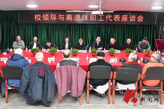 12月23日,九州体育·(中国)官方网站离退休职工代表座谈会在离退休处活动室召开。校党委书记孟劲松,党委副书记、校长胡军,党委副书记孙晓华出席会议。党政办公室、离退处负责同志及离退休职工代表参加座谈。会议由孙晓华主持。