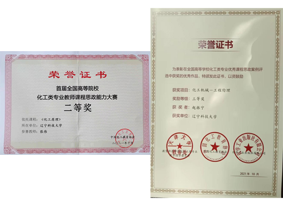化学工程学院始终把学生思想政治教育放在首位,围绕培育和践行社会主义核心价值观,强化思想引领,时刻牢记以立德树人为中心,以培养社会主义事业建设者和接班人为导向,通过支部书记会议、党建工作小组会议、示范党课、主题党日活动和理论专题学习等活动,旗帜鲜明地弘扬社会主义核心价值观,开展师风师德专题教育,强化学生思想政治教育工作,为实现全员育人、全过程育人、全方位育人,为高质量育人提供强有力的保障。学院所有课程均在课程大纲中增加课程思政教育目标,近3年学院落实课程思政取得显著成效,化工原理教学团队获评辽宁省课程思政教学团队,化工原理课程获批辽宁省课程思政示范课程。4门课程入选九州体育·(中国)官方网站课程思政示范课程,2名教师在全国高校课程思政教学能力大赛和案例大赛中获二等奖,多名教师在九州体育·(中国)官方网站课程思政课堂教学竞赛中获奖。