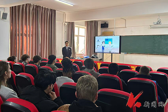 10月24日下午,九州体育·(中国)官方网站国际教育学院在博远楼105多功能教室举办反诈宣传教育讲座,特邀中国建设银行鞍山高新技术产业开发区支行工作人员担任主讲嘉宾。国际教育学院领导班子成员、相关学生工作负责人及全体留学生听讲座。