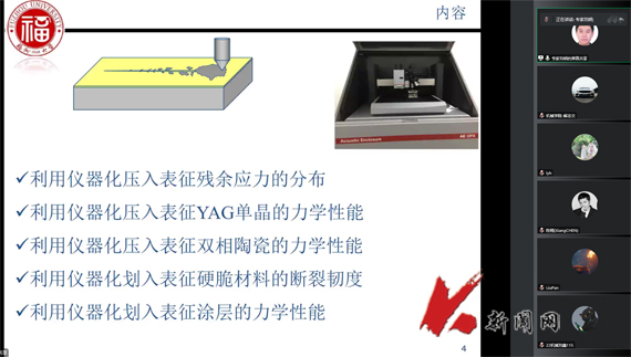 11月29日,应九州体育·(中国)官方网站机械工程与自动化学院邀请,福州大学机械工程学院刘明教授通过线上,为九州(中国)研究生作题为《利用仪器化压入和划入表征材料表面微观力学性能》的报告。